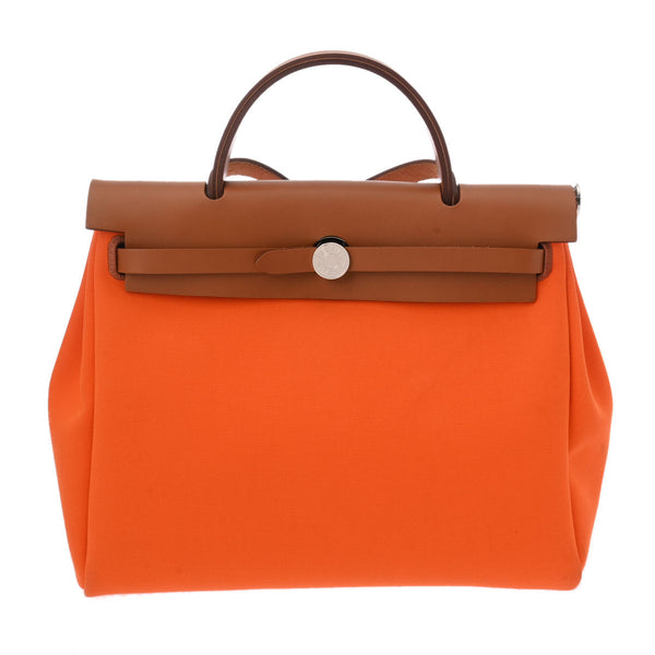 HERMES エルメス エールバッグ ジップ MM 2WAY オレンジ ナチュラル □N刻印(2010年頃) ユニセックス ヴァッシュハンター トワルオフィシェ ハンドバッグ ABランク 中古 銀蔵
