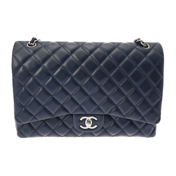 CHANEL シャネル スタッズ 紺 シルバー金具 レディース カーフ チェーンウォレット ABランク 中古 銀蔵