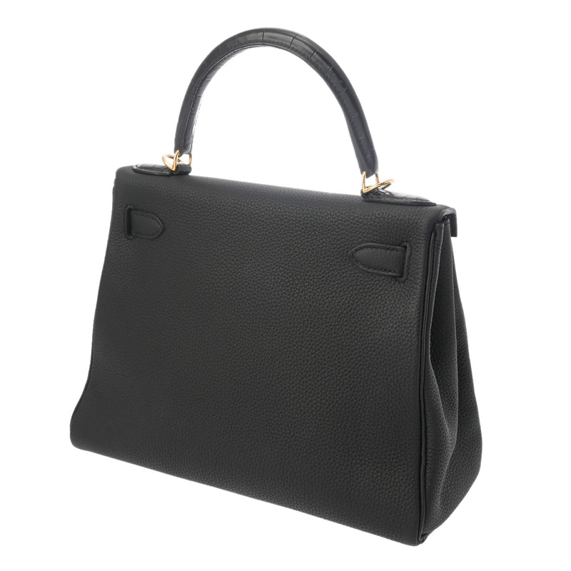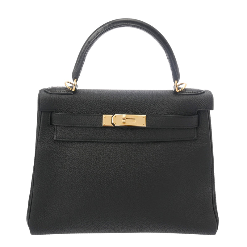 HERMES エルメス ケリー28 タッチ 内縫い ブラック C刻印(2018年頃) レディース トリヨンクレマンス アリゲーターマット 2WAYバッグ Aランク 中古 銀蔵