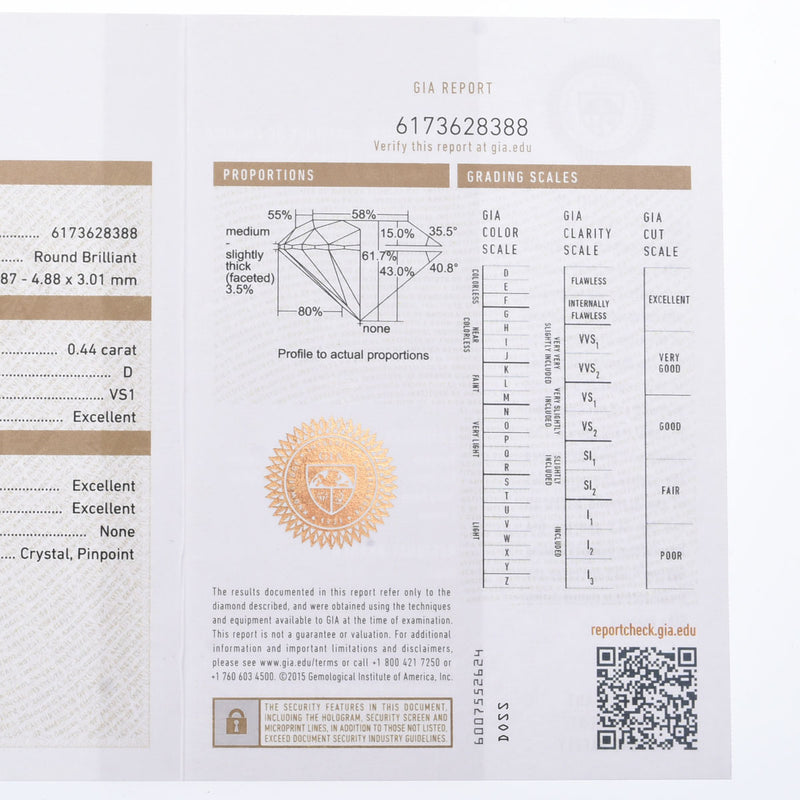 重量: 2.2g ダイヤモンド: 0.43ct ダイヤモンド: 0.44ct カラー: D カット: EXCELLENT 研磨状態: EXCELLENT 対称性: EXCELLENT 蛍光性: NONE ダイヤ形状: ラウンドブリリアントカット