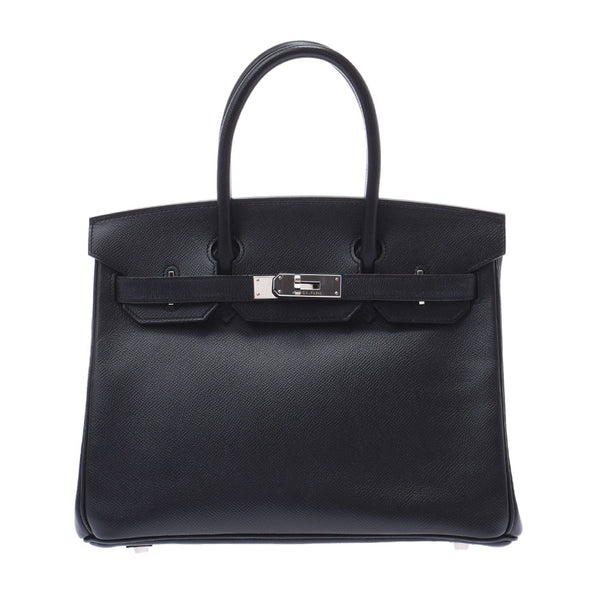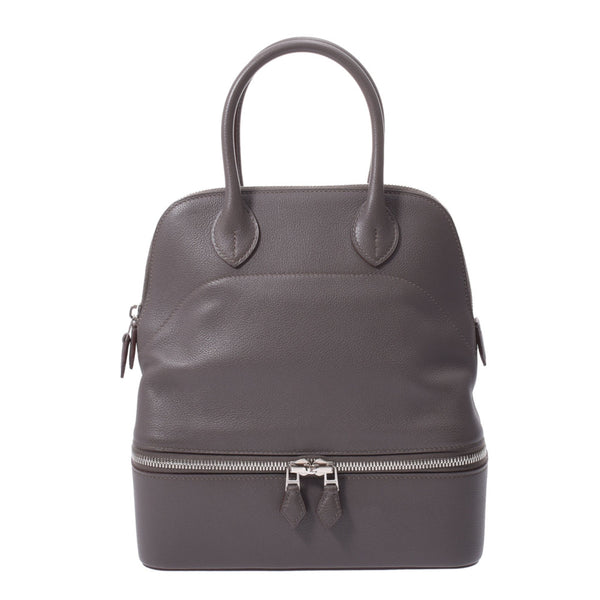 爱马仕爱马仕(HERMES HERMES PLUM ELAN)石墨银色支架□f刻(2002年左右)女士Porosus手提包AB级使用Ginzo