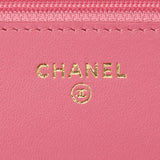 CHANEL シャネル マトラッセ Wピース チェーンウォレット ピンク レディース ラムスキン ショルダーバッグ 新同 中古 銀蔵