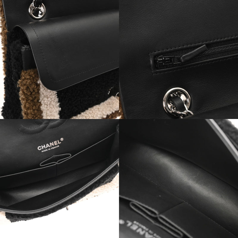 CHANEL シャネル マトラッセ チェーンショルダー 25cm Wフラップ ブラック/ホワイト/カーキ レディース ウール ショルダーバッグ Aランク 中古 銀蔵